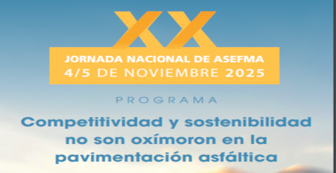 Hoy comienza la XX Jornada Nacional de ASEFMA, organizada por la Asociación Española de Fabricantes de Mezclas Asfálticas (ASEFMA), y cuyo lema este año es Competitividad y sostenibilidad no son oxímoron en la pavimentación asfáltica.