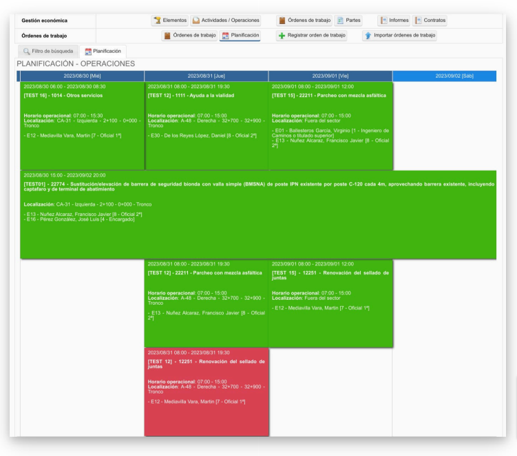 - Planificación diaria/semanal/mensual de órdenes de trabajo (operaciones, recursos y personal).